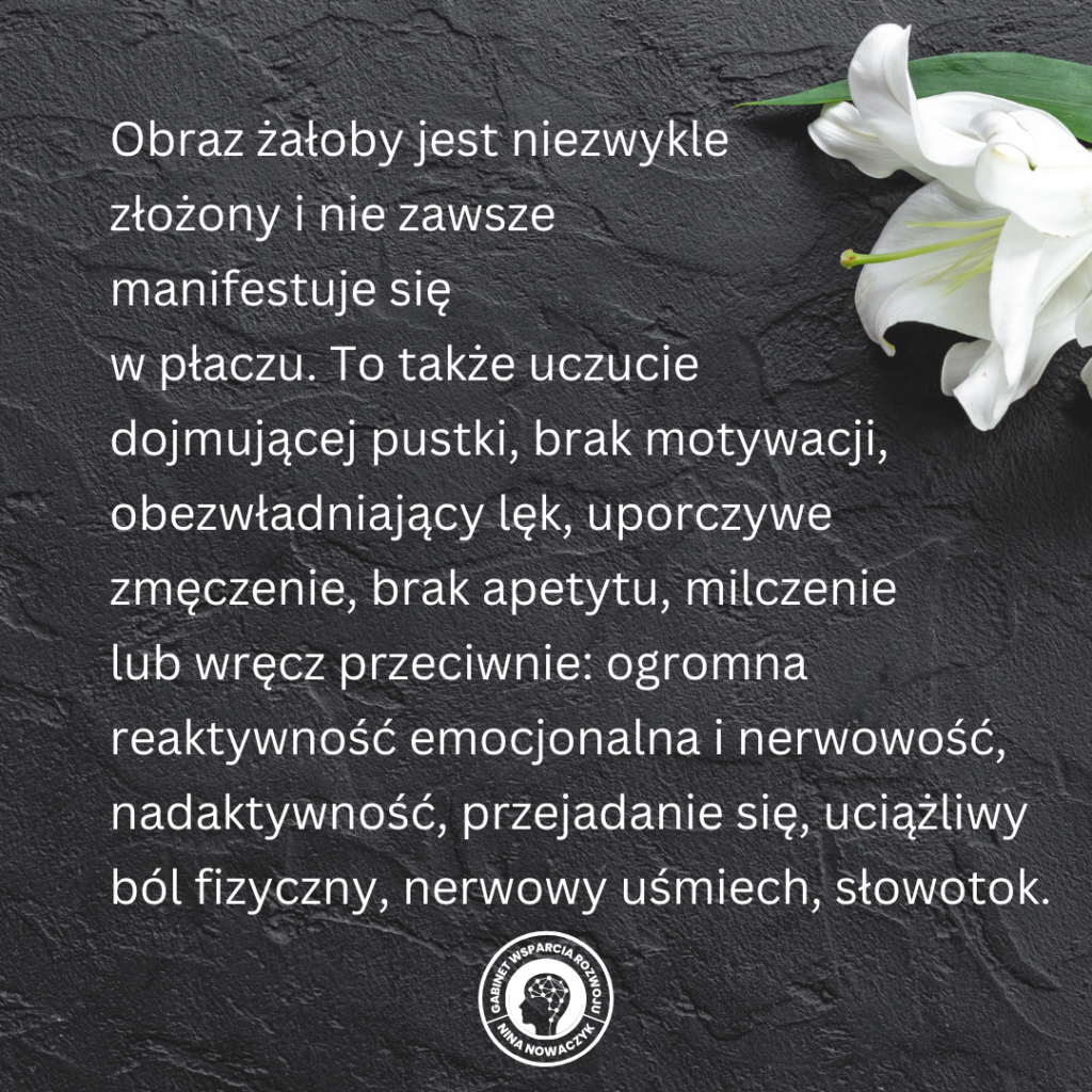Dodatkowo osoby w procesie żałoby na różnych jej etapach mierzą się z wątpliwościami, czy to, czego doświadczają, jest „normalne”.