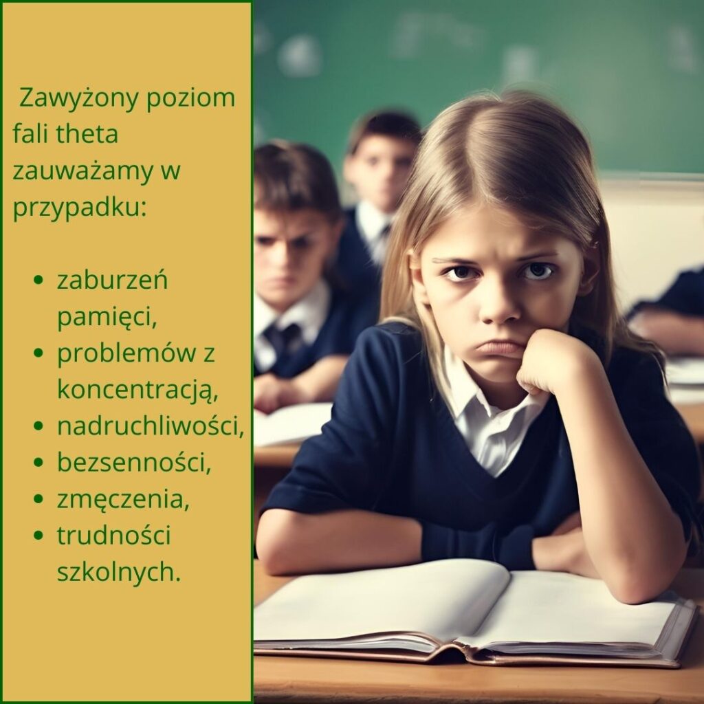🥴Zdarza się jednak, że w płacie czołowym wartości thety rosną, co jest wskaźnikiem nadpobudliwości, problemów ze skupieniem uwagi i trudności z dokańczaniem zadań.